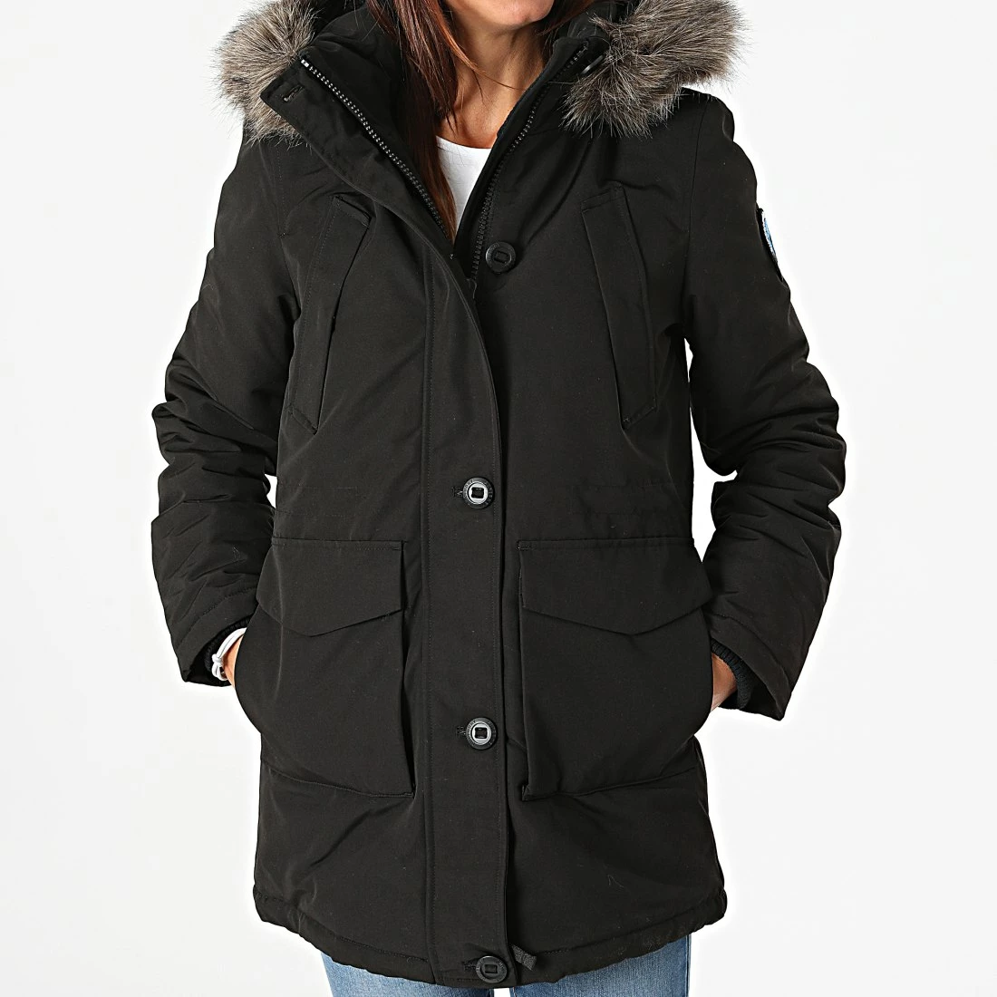 • Parka épaisse et unie avec capuche à fourrure