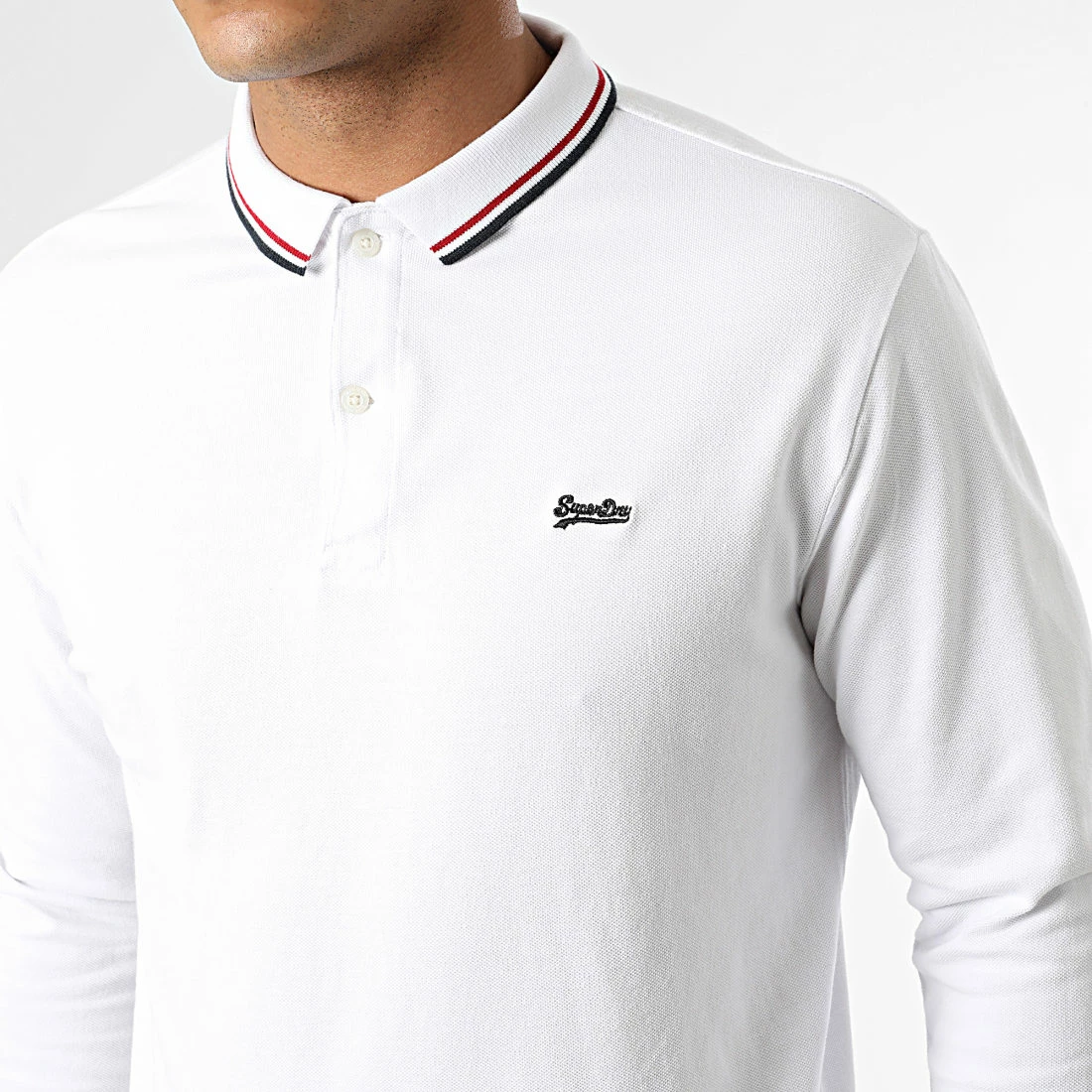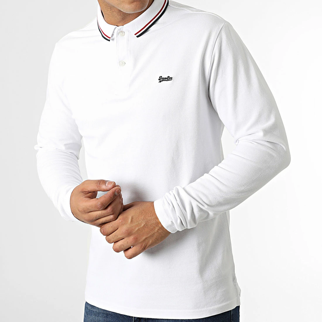 • Polo manches longues en coton brodé logo Superdry sur la poitrine