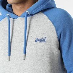 Sortie 😍 Sweat Capuche Vintage Logo Embroidery M2011948 Gris Chiné Bleu de Superdry 💯